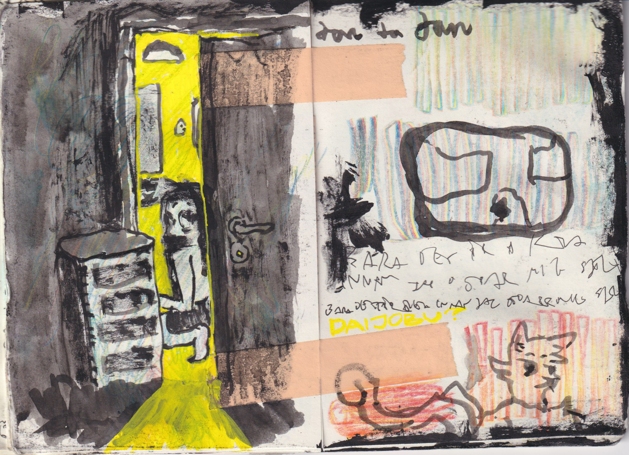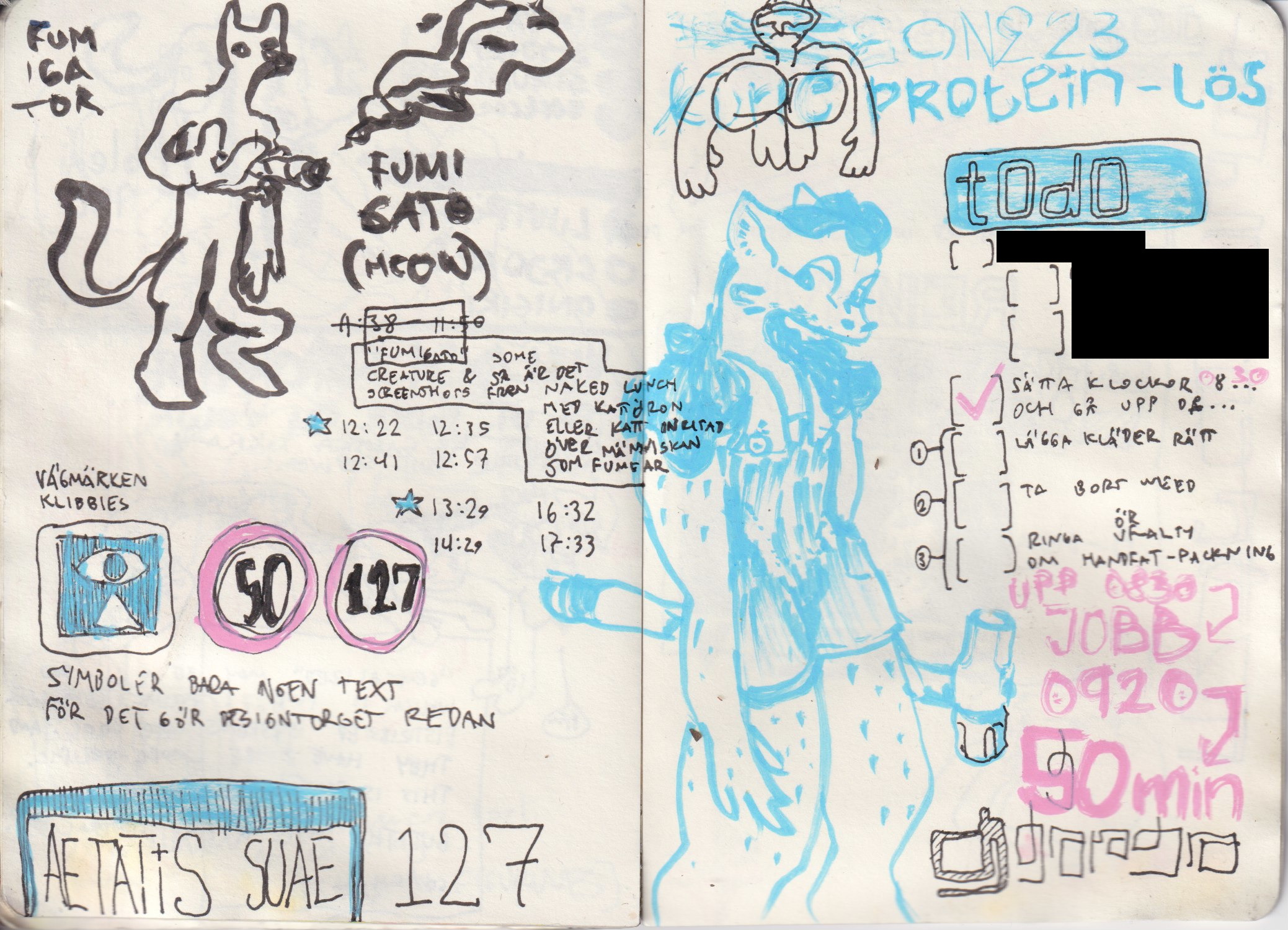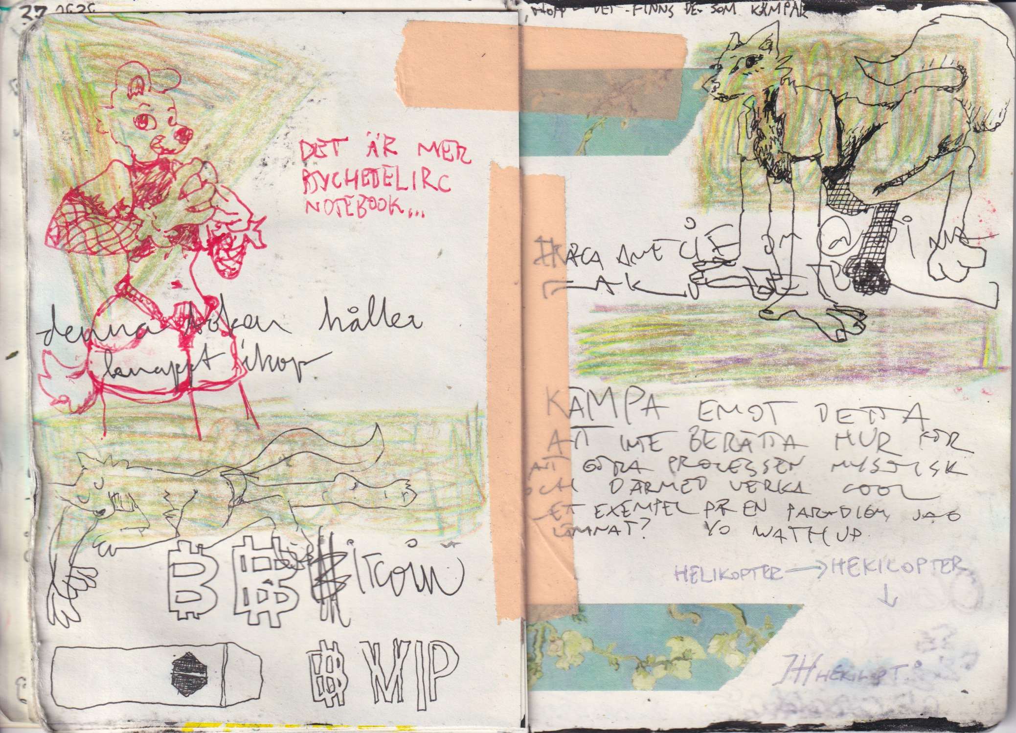 This is an old notebook idk how many years old. I suppose it was going to be the fourth fifth notebook something like that. Anyway i got angry because it just fell apart and i had to tape it together and it still just wanted to be spread like a dandelion... shedding pages all over...